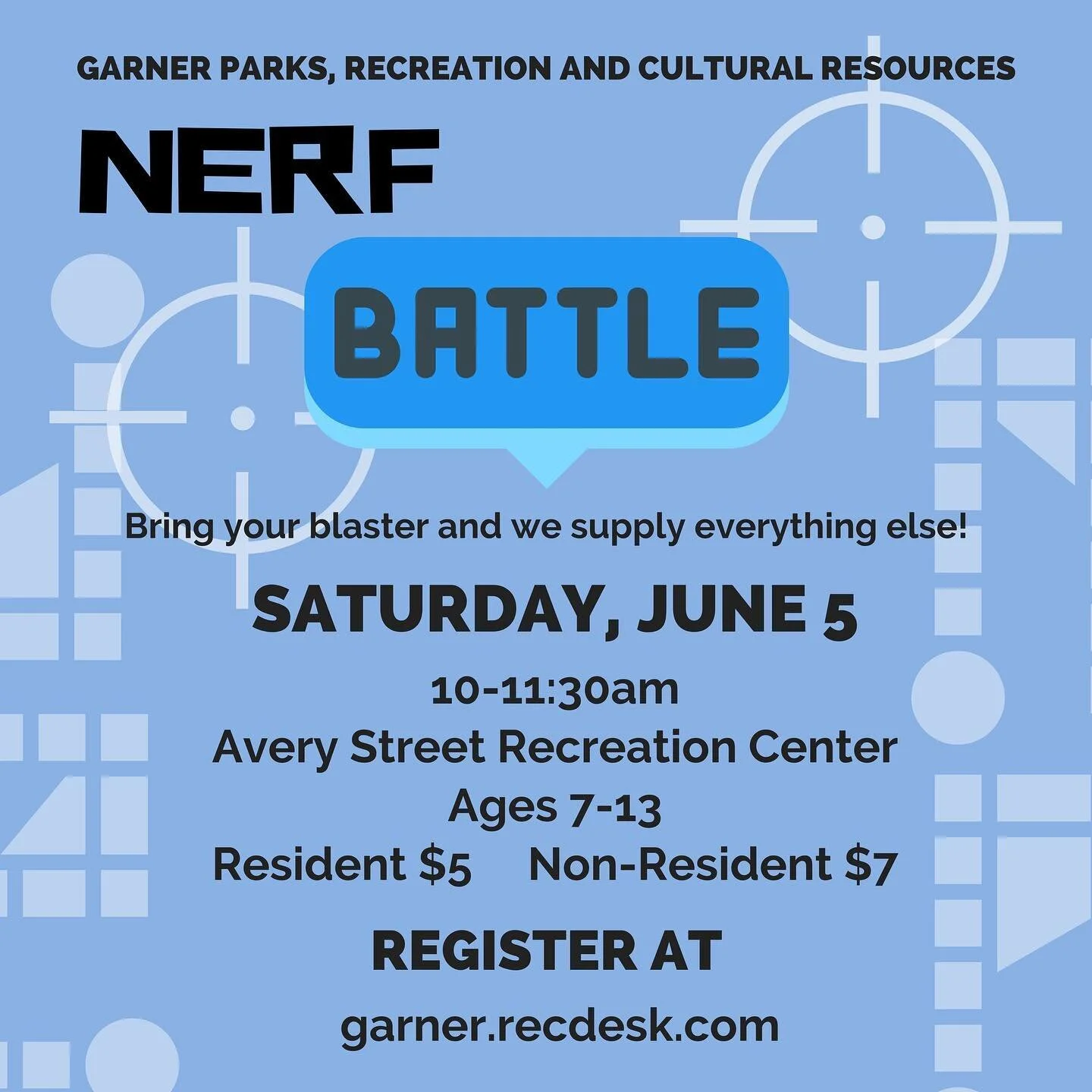 Join us for fun morning of Nerf Battles. Participants will be divided into teams to play games such as Capture the Flag, Humans vs Zombies, and more. Each participant needs to provide his/her own blaster (see below for guidelines), safety googles and darts will be provided.